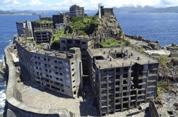 (Gunkanjima) à Nagasaki, construit vers 1910. Le béton s’est